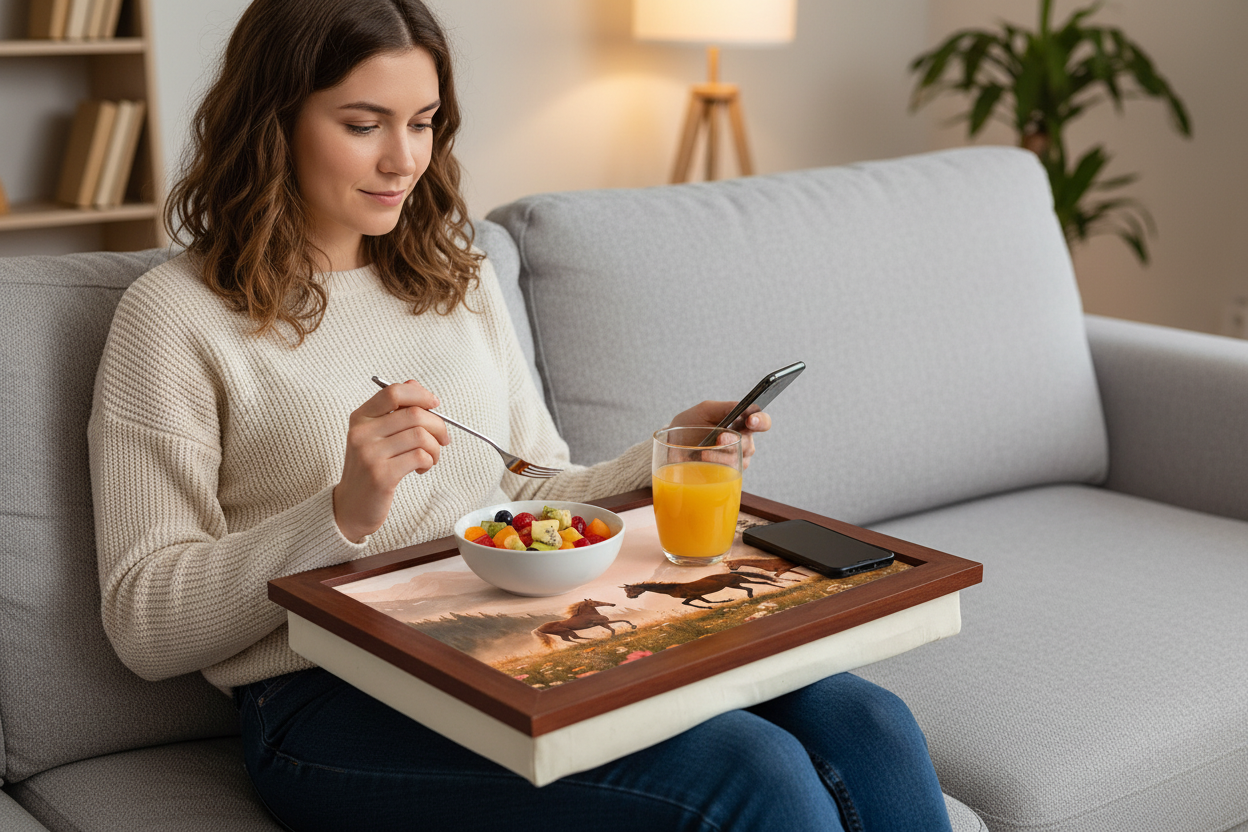 Why sit at a dining table or desk, when you can sit on the sofa, eat and watch TV at the same time!